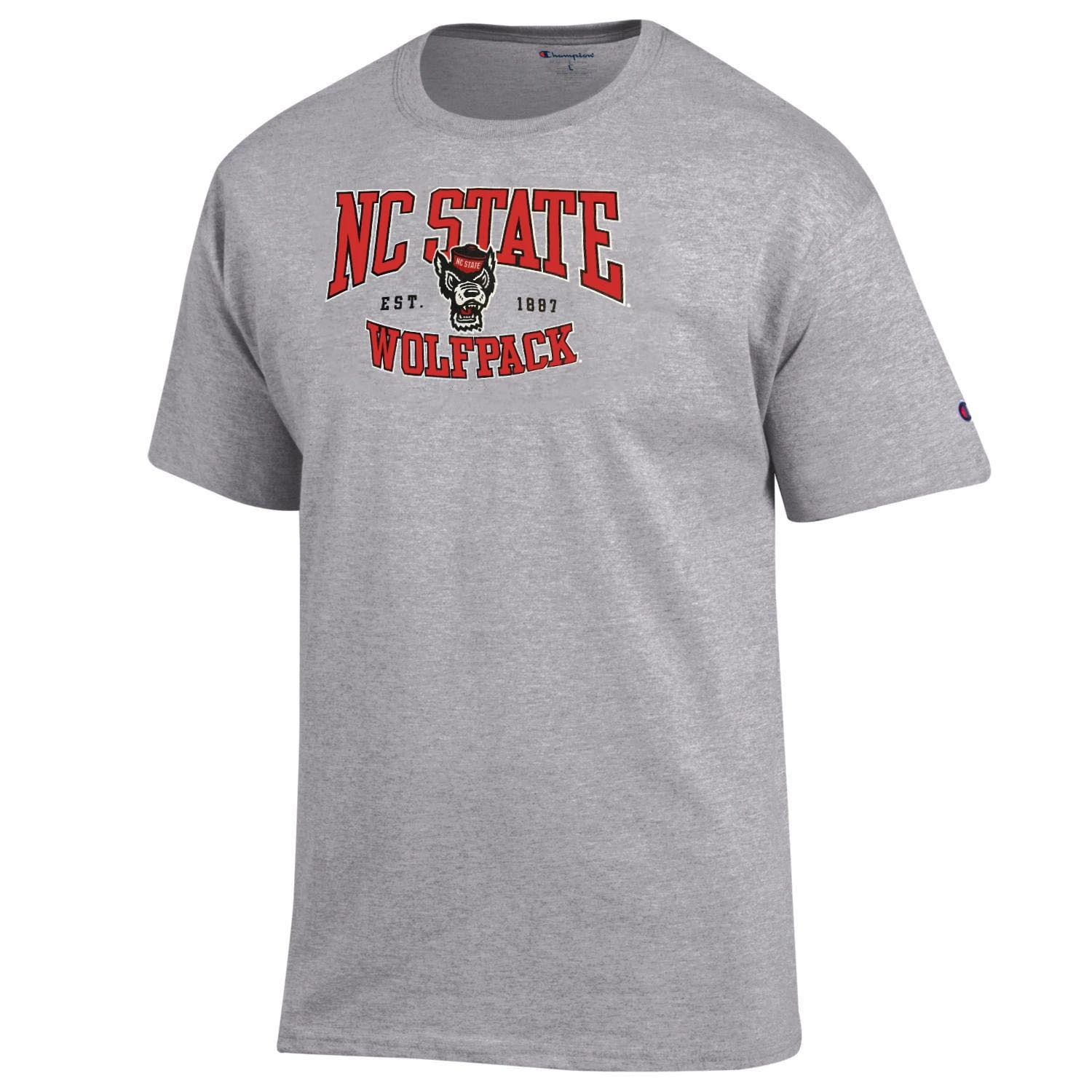 North Carolina State Wolfpack Champion Grey Arched Wolfpack Est. 1887 Over Wolfhead T-Shirt