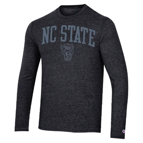 North Carolina State Wolfpack Champion Heathered Black Tri-Blend Blackout Long Sleeve T-Shirt