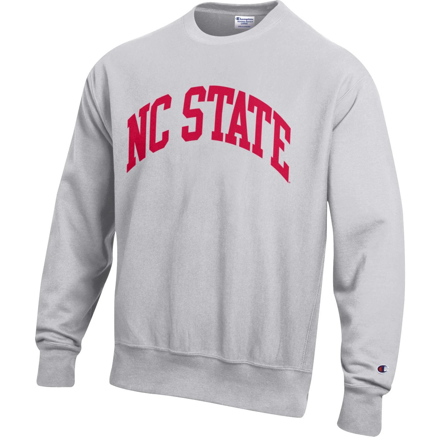 North Carolina State Wolfpack Champion Silver Grey Red NC State Reverse Weave Crewneck Sweatshirt