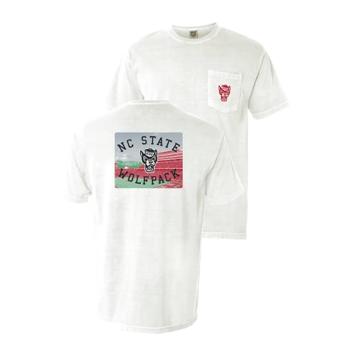 North Carolina State Wolfpack Comfort Colors White Football Stadium Pocket T-Shirt