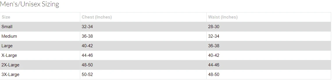 | Size | Small, Medium, Large, XLarge, 2XLarge, 3XLarge |