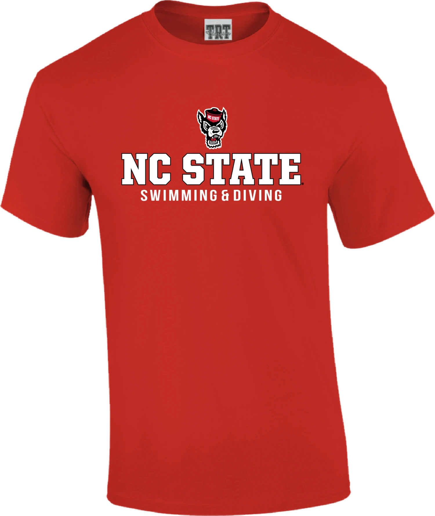 - Screen printed NC State Swimming & Diving wordmark and Wolfhead logo